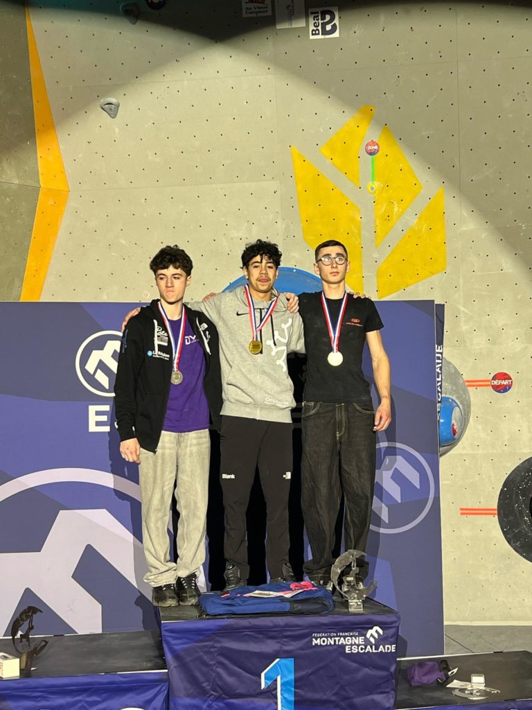 En U17 garçons, le sort aura été moins favorable pour Oscar VENET qui aurait pu décrocher l’or. Il revient avec le bronze. Certes il est médaillé mais le bloc 3 lui aura été fatal avec deux essais de trop. Cependant, Oscar est U17 première année, il aura sa revanche l’année prochaine.