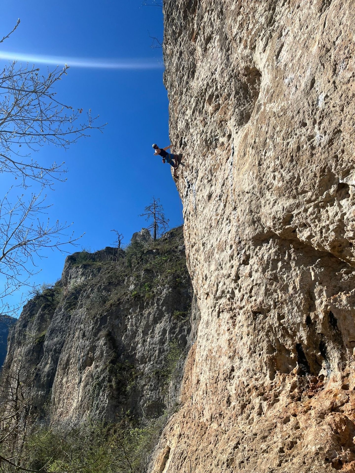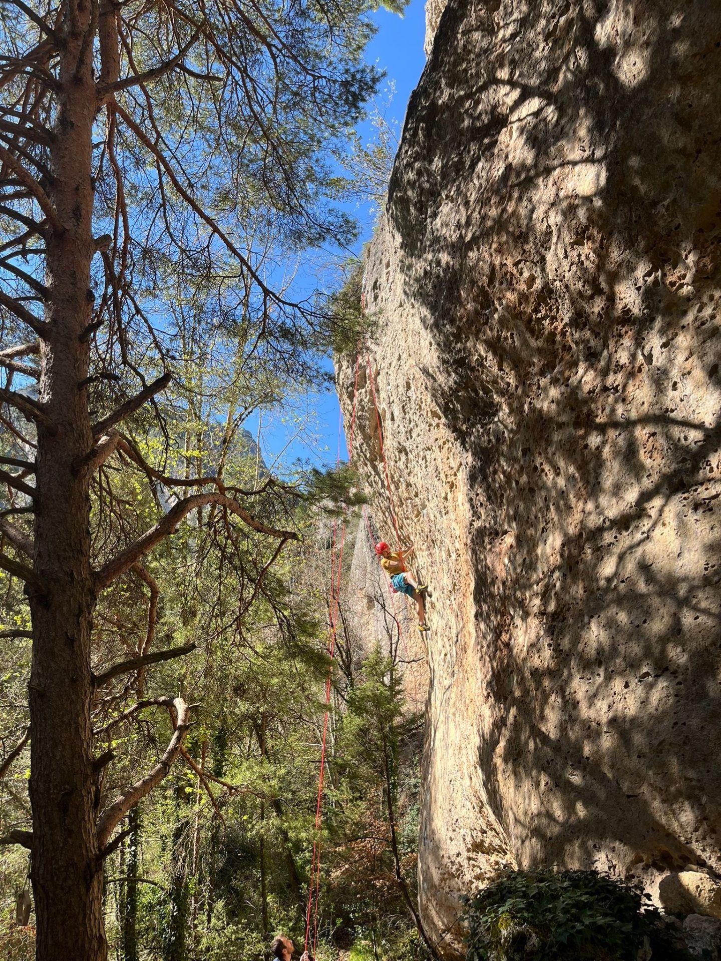 Mais comme un grimpeur n’est jamais content il faisait trop chaud pour grimper au soleil et c’était globalement mouillé à l’ombre…
